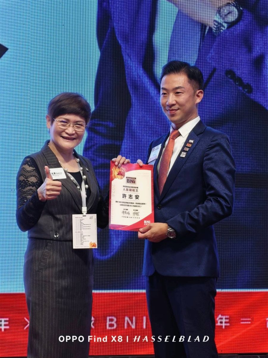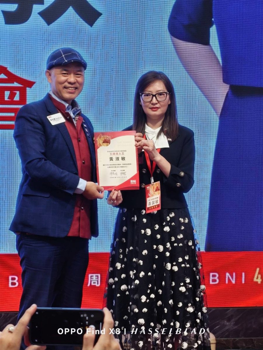 今天中午Jessica就傳來他的朋友在BNi年會直播,一直到後面頒獎時候才知道這位受獎者『大商/鄭淑薰』竟然也是三金質獎章跟志安一樣都很厲害。