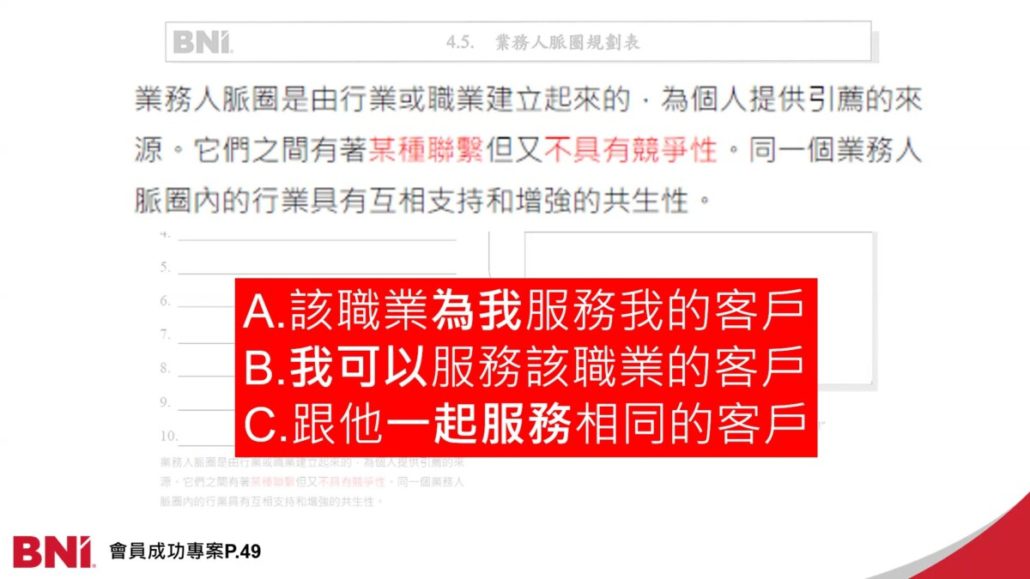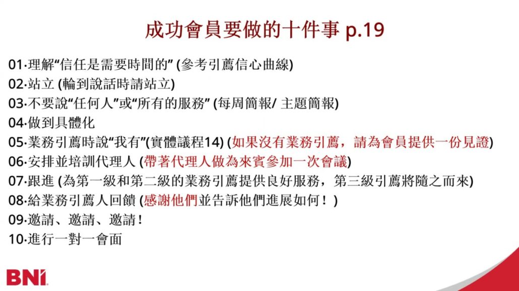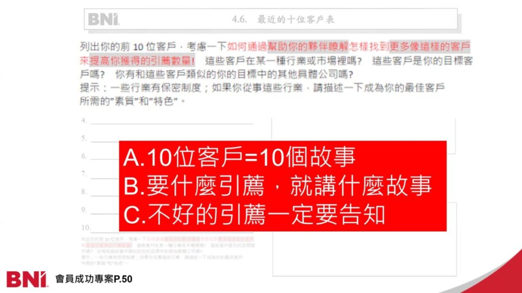 在BNI的系統內,你得到的引薦一定是你說的,但不見得是你要的。