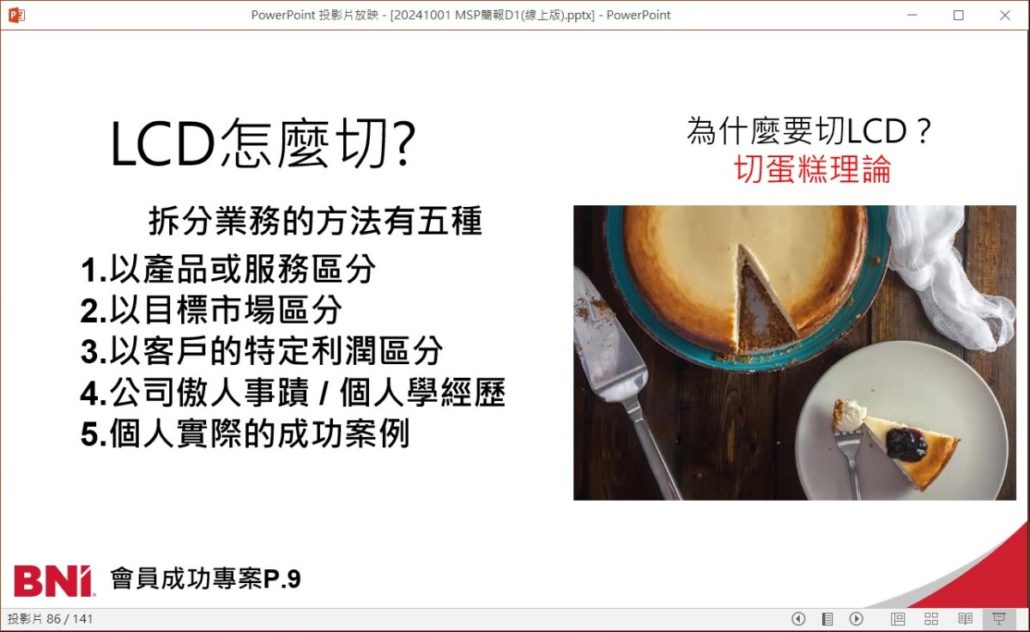 以上簡稱LCD(最小公分母),把業務細分到最小單位,每週介紹你業務的一小部分。